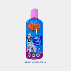 AMIGO MAXIMO esta indicado para el exterminio de pulgas, piojos y garrapatas, además previene y combate los ácaros DEMODEX, SARCOPTES y otros que ocasionan la sama.