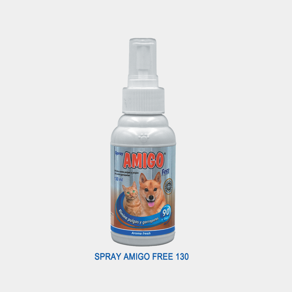 AMIGO FREE, es una solución de aplicación cutánea para el tratamiento y prevención de parasitosis externa ocasionada por pulgas y garrapatas en perros y gatos.