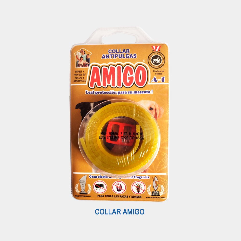 Collar antipulgas AMIGO es un accesorio diseñado para liberar sustancias activas que repelen o eliminan pulgas, garrapatas y otros ectoparásitos que pueden afectar la salud de tu perro.